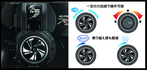 ノーマルエクステンションユニットのスプリングをソフトタイプに変更しました。従来のスプリングは、傾けるほどにバネのテンションが強くなりますが、今回のソフトスプリングでは傾けてもほぼ一定の力加減で動作させることができます。さらに、テンションを調整することも可能ですので、バネを堅く調整するとともに、ニュートラル通過時の「乗り越え感」の強弱を変更できます。